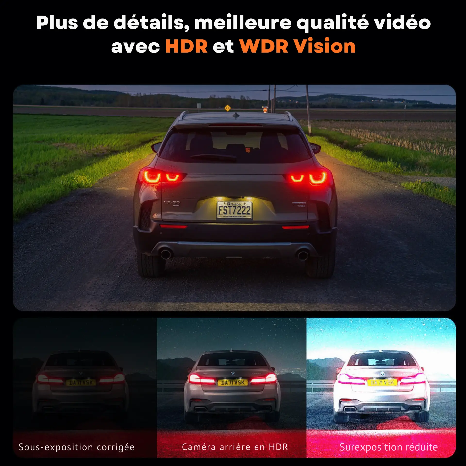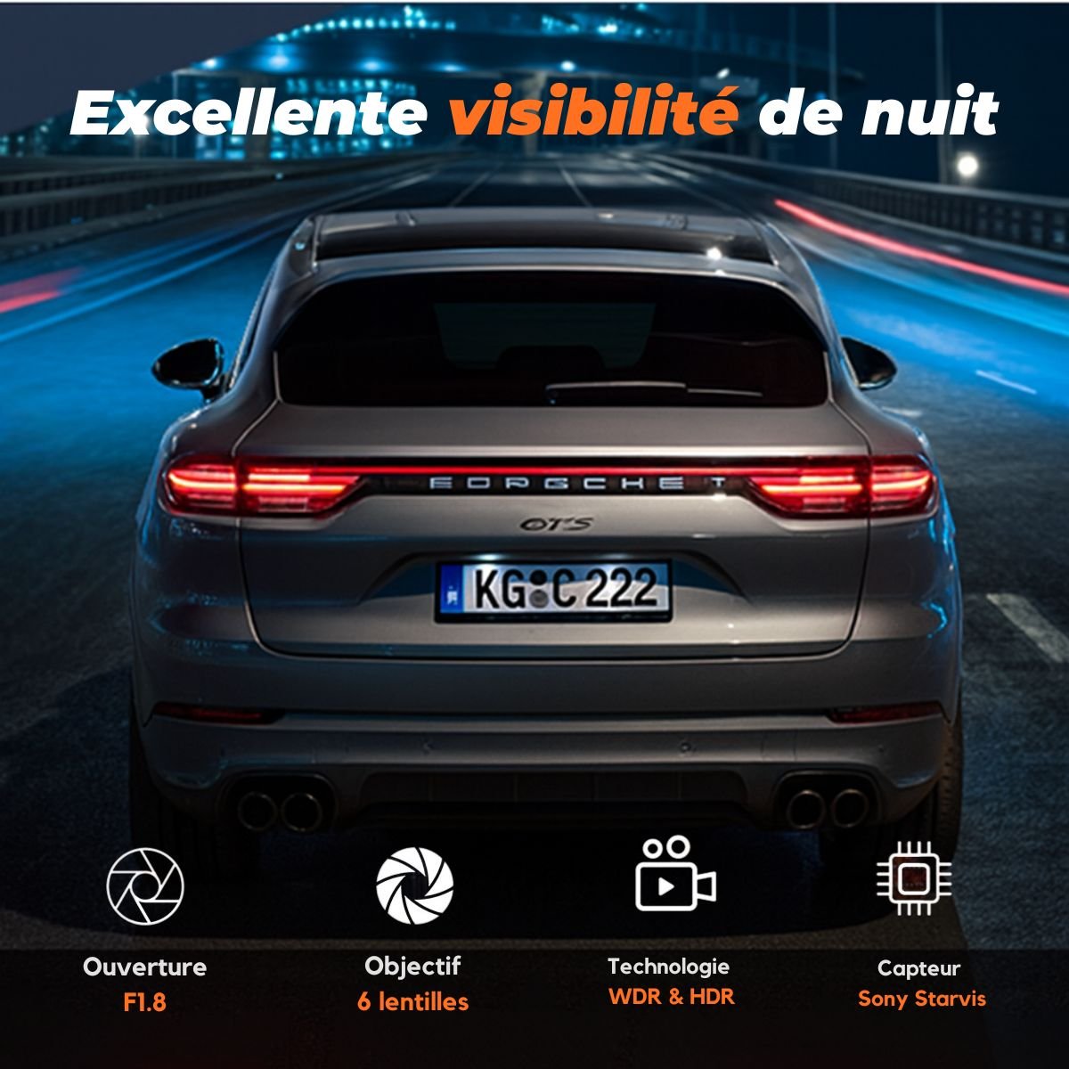 Oui. Grâce au capteur Sony Starvis et à la technologie WDR/HDR, la caméra enregistre des images claires et détaillées même dans l’obscurité, les tunnels ou sous la pluie.