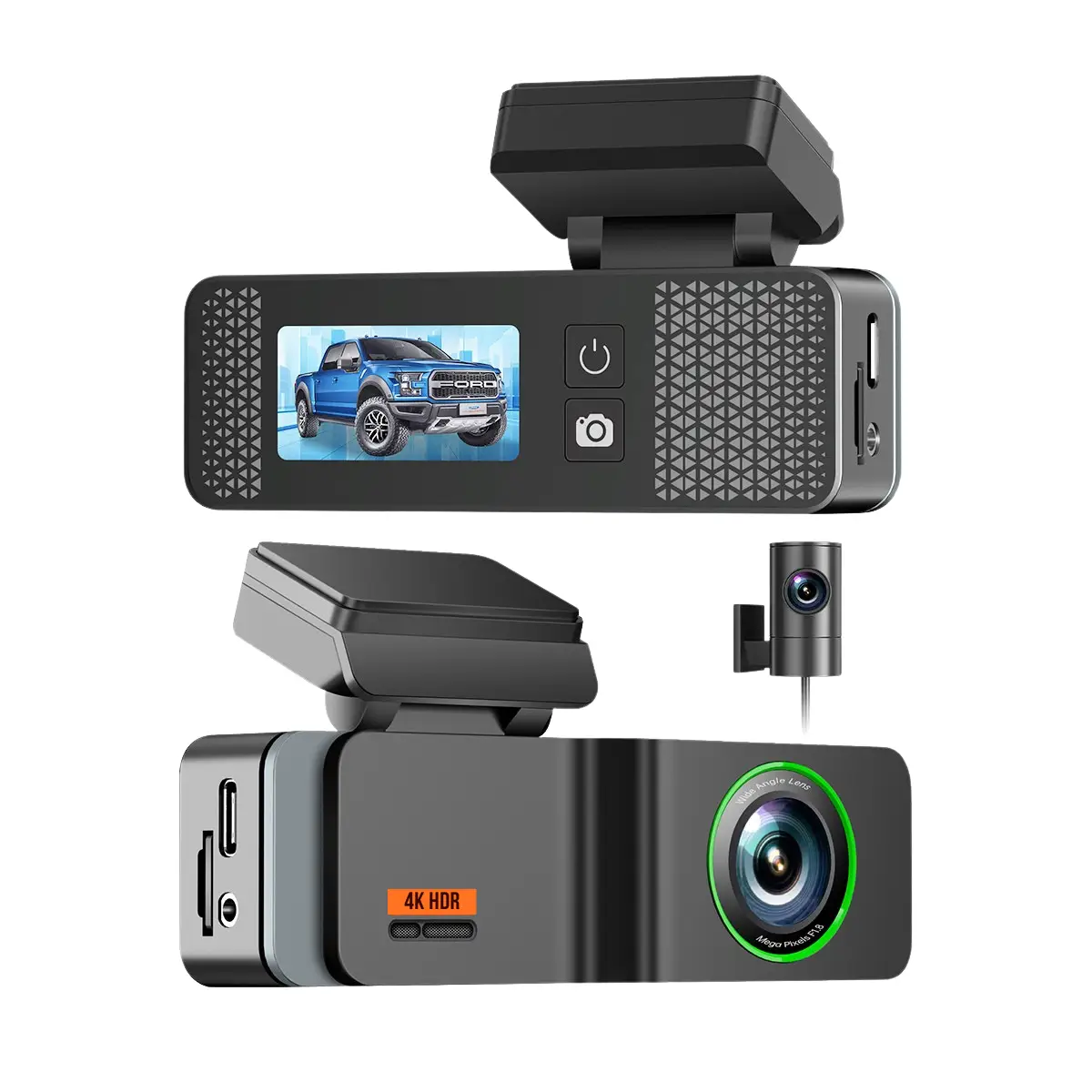Avec son format miniature, la Dashcam 4K GPS se fond dans l’habitacle et n’obstrue pas la vision du conducteur. Son support détachable rotatif à 120° permet d’ajuster facilement l’angle, tandis que la caméra arrière orientable à 360° peut être placée à l’intérieur ou vous le souhaitez. La connexion USB Type-C assure une installation stable et rapide. Son design discret et élégant la rend idéale pour un usage quotidien.