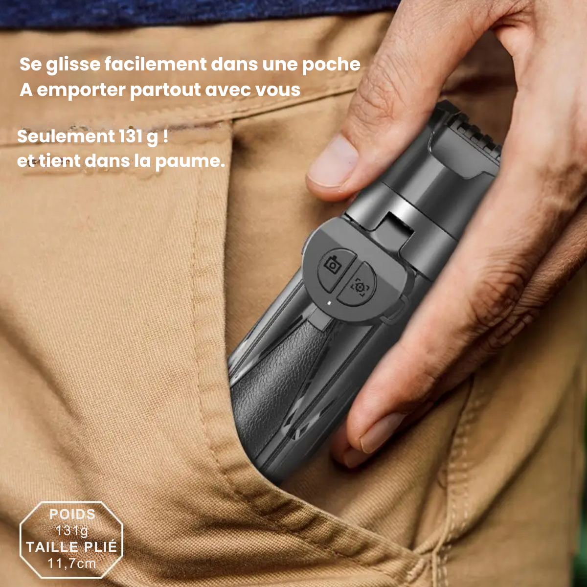 Avec ses 15 cm repliée et son poids plume, elle se glisse facilement dans une poche, un sac ou un sac à dos. Idéale pour les déplacements, voyages ou tournages extérieurs.